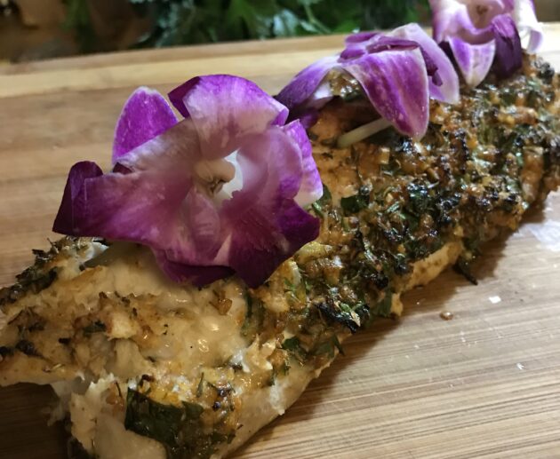 Monkfish with edible flowers